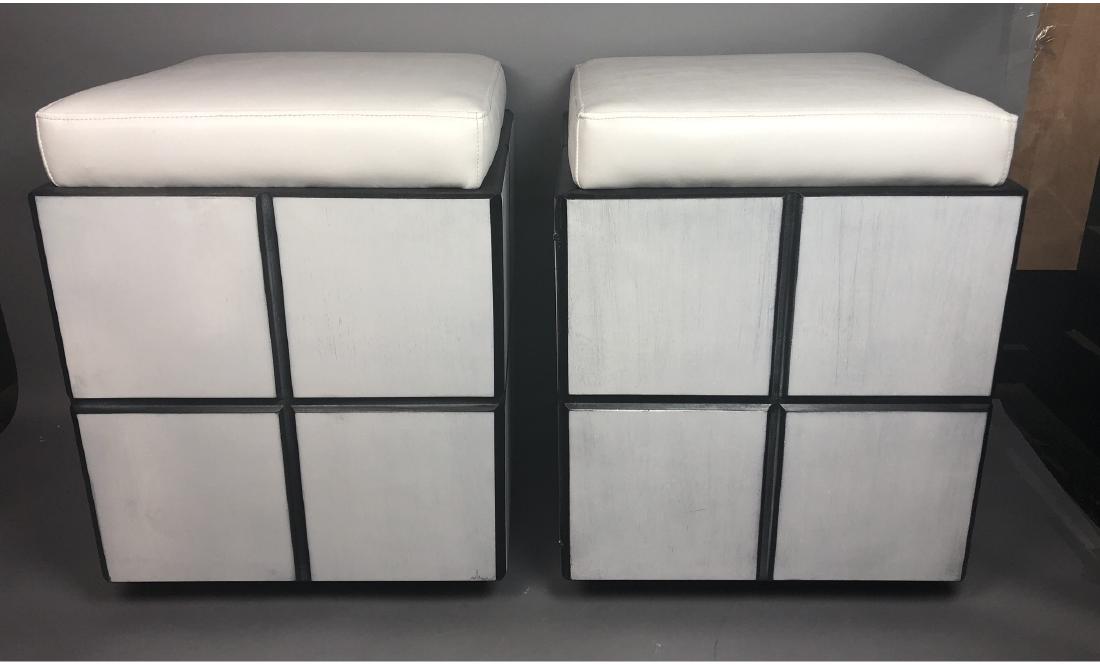 Pr Rolling Bench Seat Cabinets White Vinyl Cushi