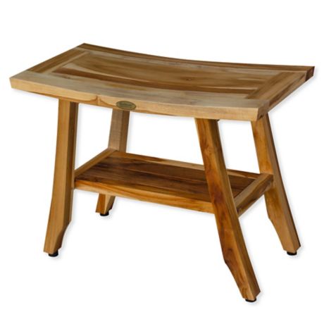 Ecodecors Earthyteak Satori 28 Inch Teak Shower Bench With Shelf
